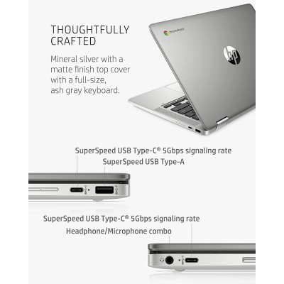 HP Chromebook x360 14a 2 合 1 笔记本电脑,Intel Pentium Silver N5000 处理器,4 GB RAM,64 GB eMMC,14 英寸高清显示屏,Chrome OS,带网络摄像头和双麦克风,工